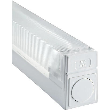 Reglette S19 IP24, autorisee Volume 2, avec interrupteur, avec lampe LED 6W 2700K 600 lumens fournie, diffuseur clair. Produit Made in France.