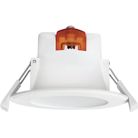Encastre Plafond, corps thermoplastique blanc, diffuseur PC et dissipateur thermique aluminium, fixe, LED integree 7W 3000K 630 lumens. Connexion rapide sans outil.