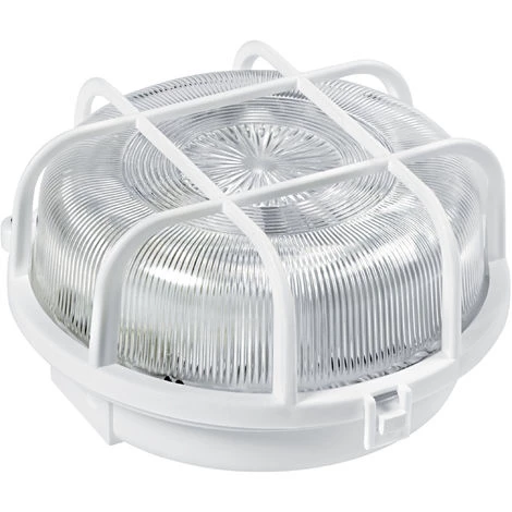 Hublot exterieur IP44 IK02, rond Ø194mm, blanc avec grille thermoplastique, E27 100W max., lampe non fournie