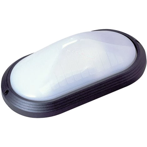 Hublot exterieur IP65 IK10, ovale, corps thermoplastique noir, E27 60W max., lampe non fournie