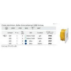 Spot Carré à Leds Bleues Aric 3929 Gris